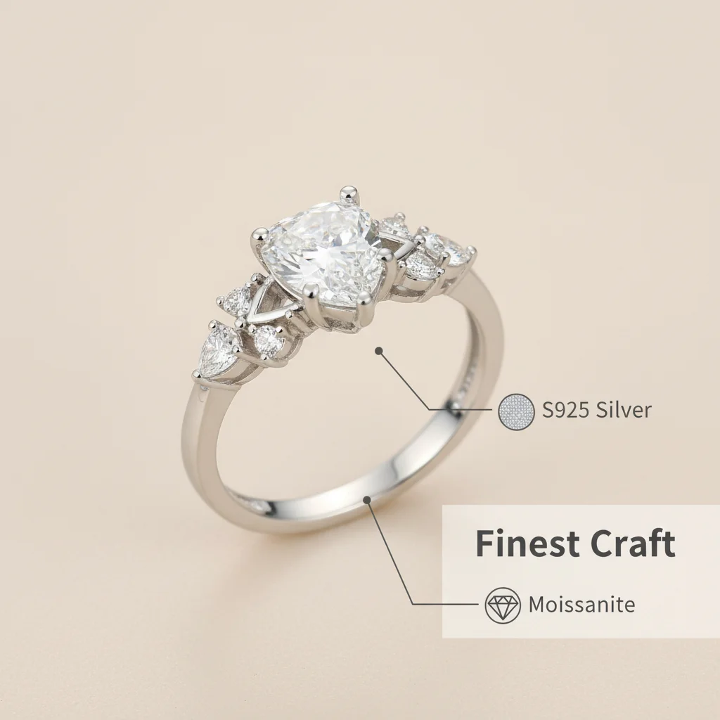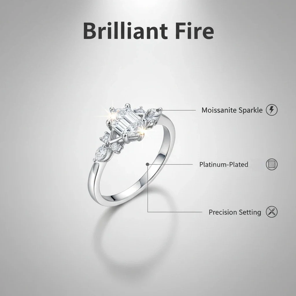 Diamond-like Shining Moissanite Rings Fine S925 Sterling Silver Platinum Plated Rings Women Wedding Brilliant Sparkling Jewelry